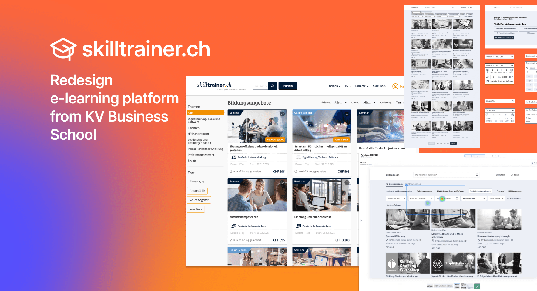 Redesign of an e-learning platform, developed for and used by KV Business School. Focused on clearer user flows, improved usability, and higher student engagement.